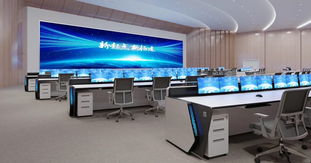 • 组成:调度台席、大屏显示墙、会商区、设备间、监控区。